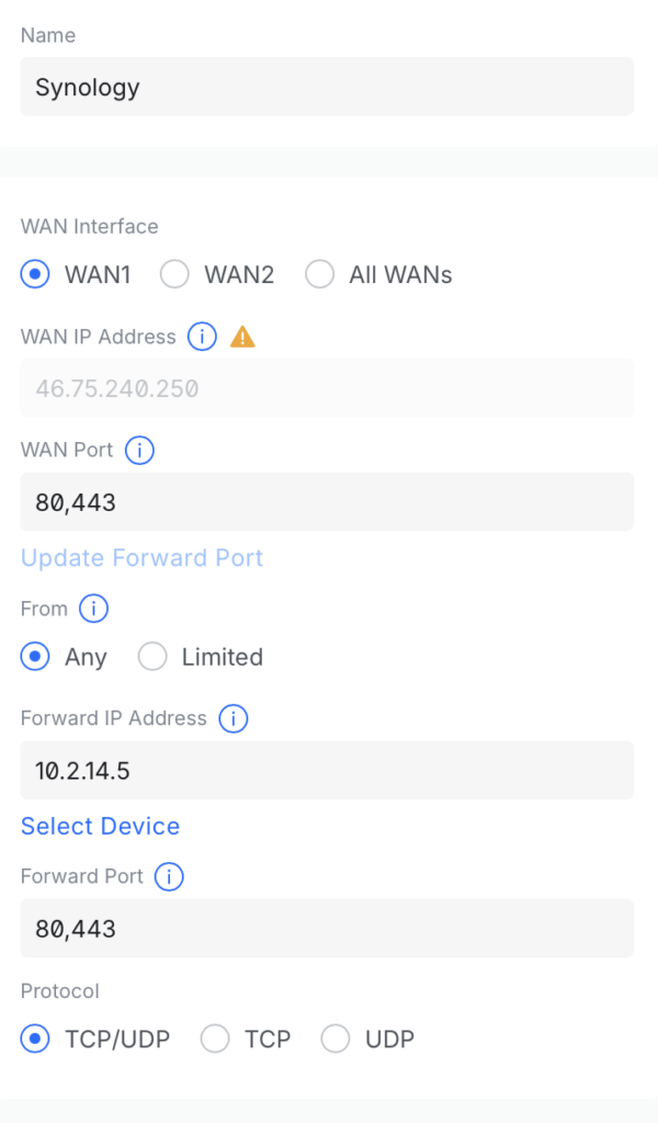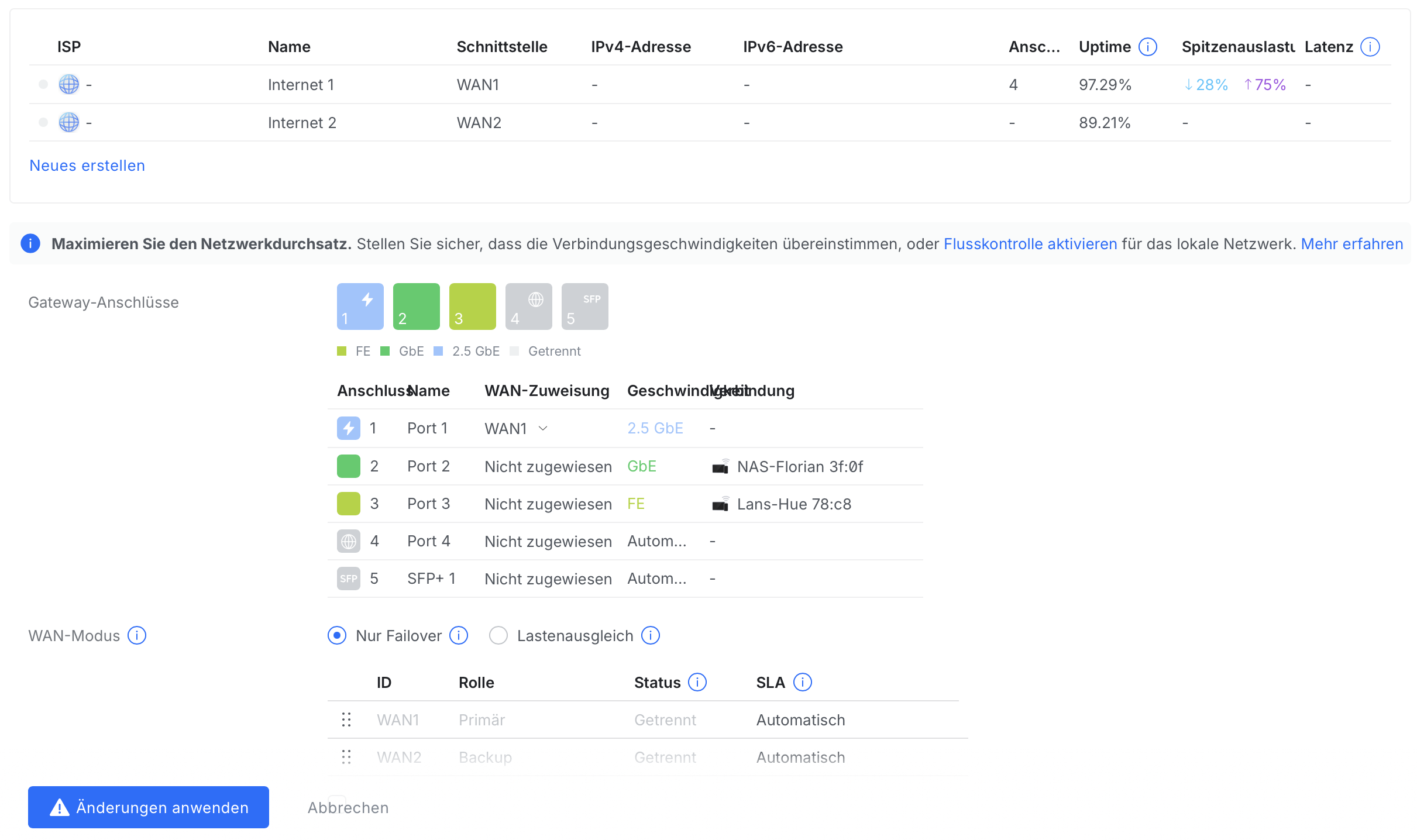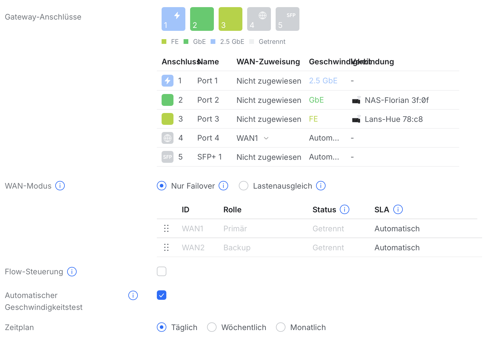 In the first step we need to change the default port for WAN1 to Port 1 of the UDR7 (this is also the most important step):