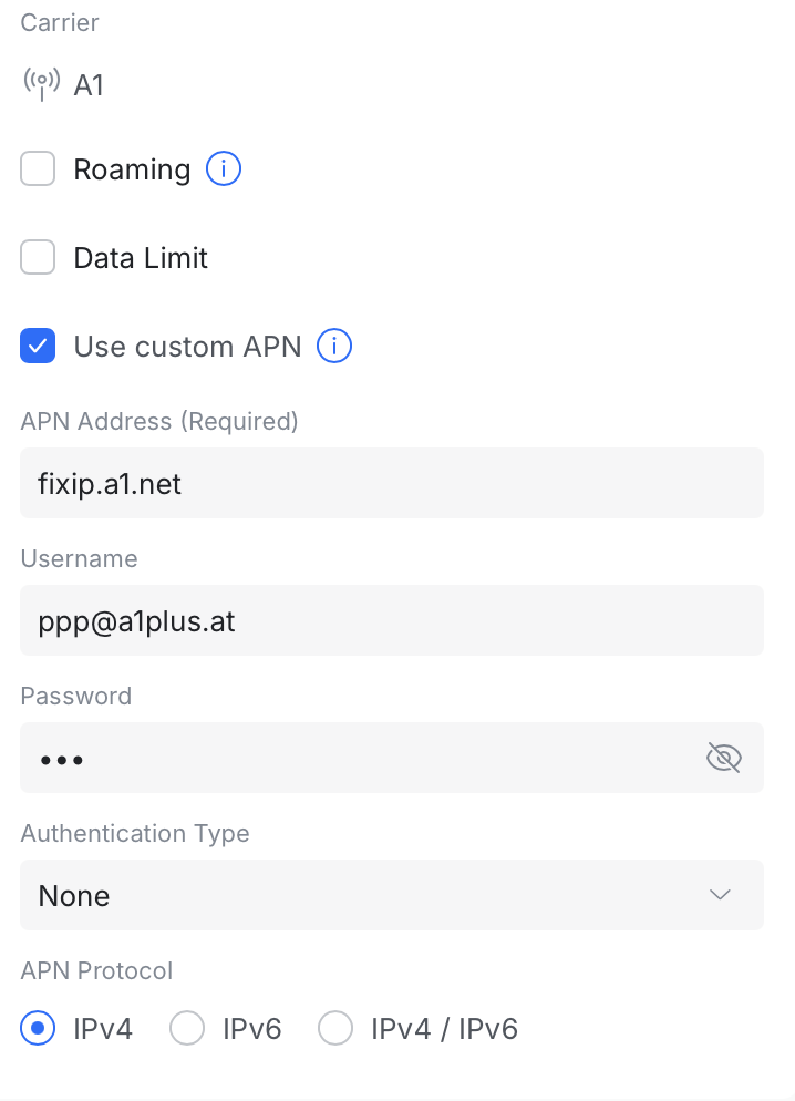 Finally I will change the APN settings to a static IP-Address. This step refers to any customers of the Austrian provider A1 Telekom Austria like me, if you have a business tarif for your 5G Internet and therefore a static IP-address.